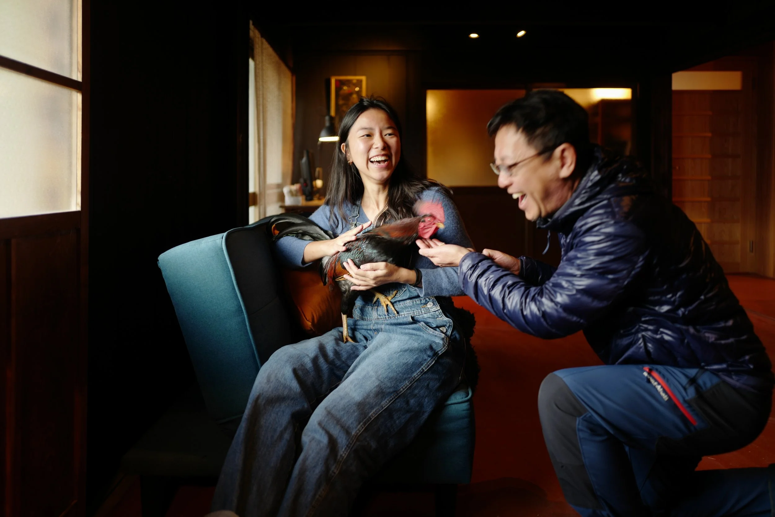We encourage all our visitors to face their fears head on. Our chickens, ducks and dogs are usually in enclosures or on leashes. Goats roam free to weed. You will see wild birds up close, but wild boars, deer, Japanese macaques, racoons, or bears fear us more than we fear them and they will stay away from us.