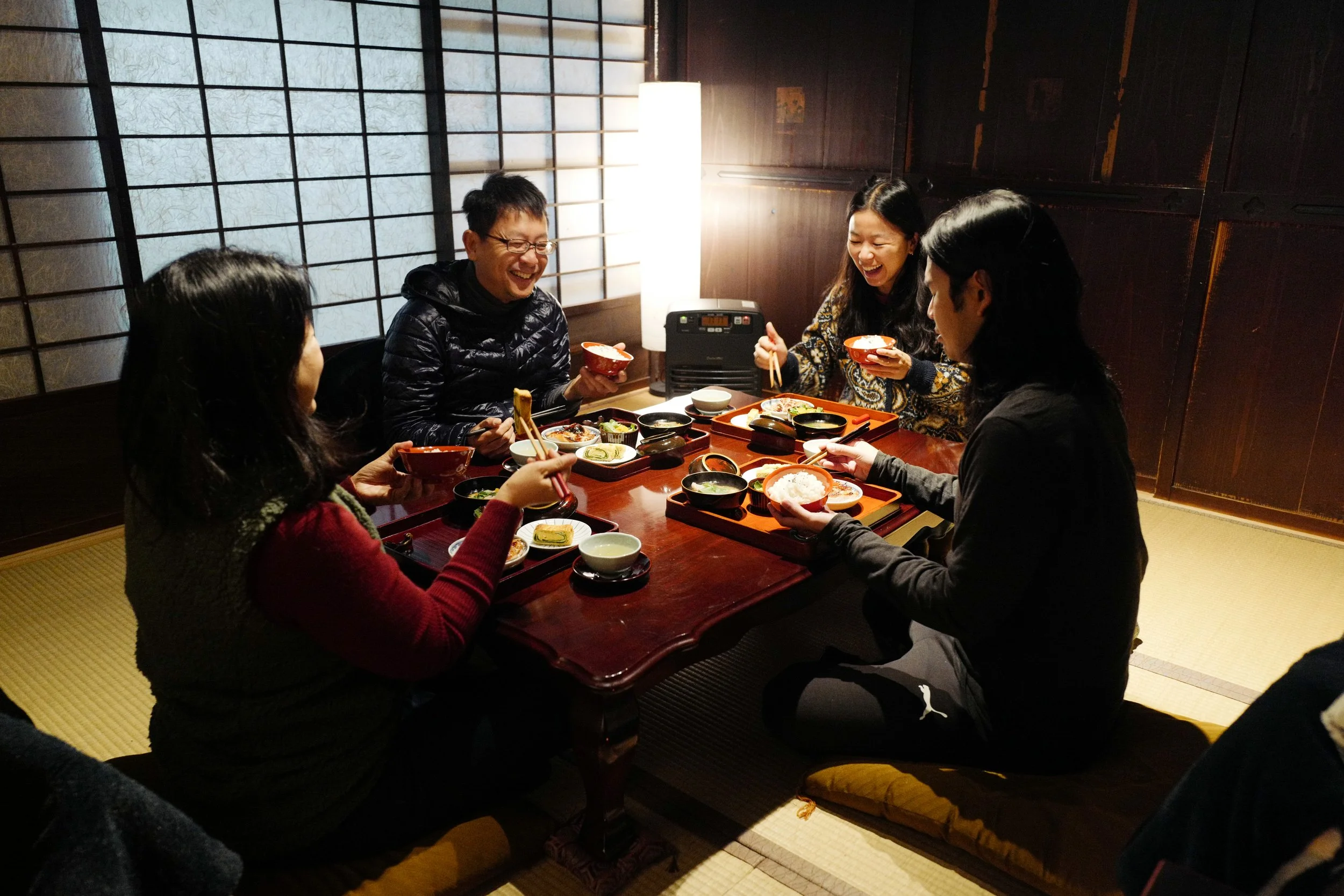 Meet up with the other participants on Day 1 at Kii-Tanabe Station, and you’ll be shuttled here over the course of an hour over windy mountain roads in a roomy 8-seater Toyota Voxy or a sturdy 5-seater Nissan Xtrail. You’ll be driven back down on the last day. We recommend flying through Kansai International Airport, a 2-hour train ride away from Kii-Tanabe Station.